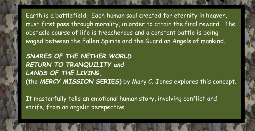 The Mercy Mission Series is an intriguing tale set in rural, 1940’s America. With engaging characters and a strong developing story, Snares of the Nether World, Return to Tranquility and Lands of the Living, by Mary C. Jones is guaranteed to entertain the reader with the turn of every page. The “Tom Sawyer” style adventure, with a “Joan of Arc” heroine who is guided by celestial beings, is fascinating to read and a delightful vision into free-will, prayer and the unseen world of guardian angels. The author’s unique blend of realism and spiritualism promises to be unlike any novel you have ever read. The three-book set is available at www.amazon.com/author/marycjones.
